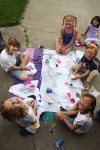 Our big girl turned eight this week! We had so much fun celebrating our passionate, dramatic, artistic daughter. She asked for an art party which gave me a chance to throw the party of my dreams! Tye die, watercolors, stamps, canvas, sidewalk paint….oh my, did I have a ball planning! We set it up in the garage so they could be as messy as they wanted and then they entertained themselves. Big girl even wanted to make the cake into an art project – so the girls decorated their own cupcakes. Seriously the most chilled out birthday ever and we had one happy birthday girl.