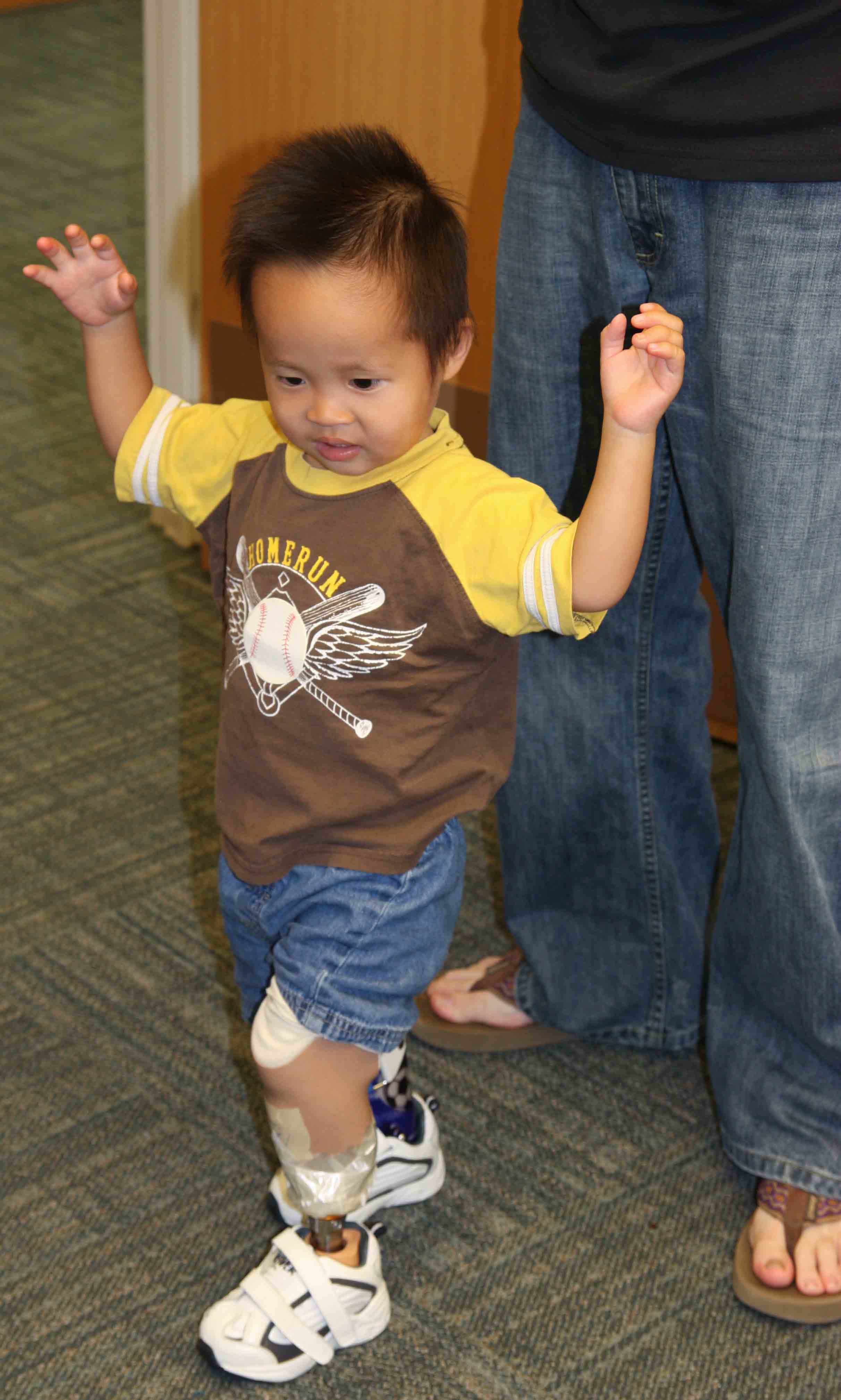 Yesterday, as I watched Little Man slide on his new prosthetic leg, I was numb with emotion. He was annoyed at first with the cumbersome weight and stomped like an anxious filly. He immediately tried to shake it off giving the doctors grief. I had expected as much from my over comer; He puts up with nothing that might slow him down. For the moment, the leg was an obstacle.