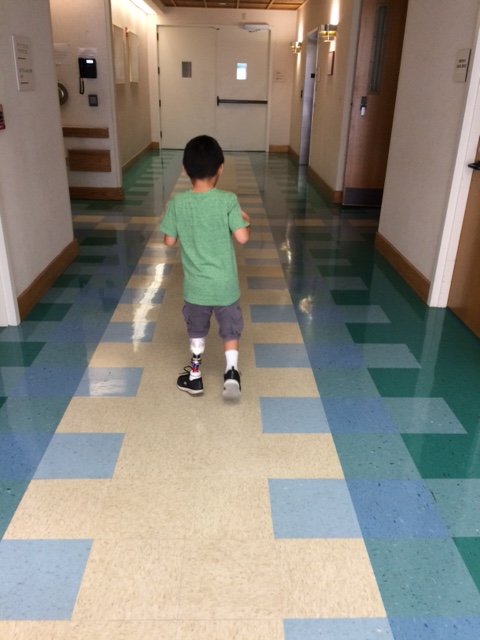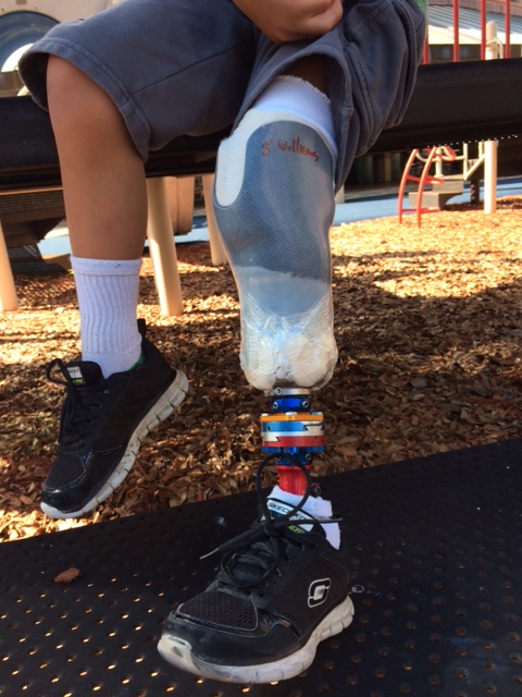 He has been measured, casted, and chosen a color and design for his new leg. This past week he went for a fitting – everything has been made except the outer shell. He walked on it. The prosthetist adjusted the rod and metal plates that make up the inner parts of the leg after watching him walk. So cool how they can match his legs and help him walk with an even gait. Every time we have a new one made I am amazed at the process. One more week and we should be done.
